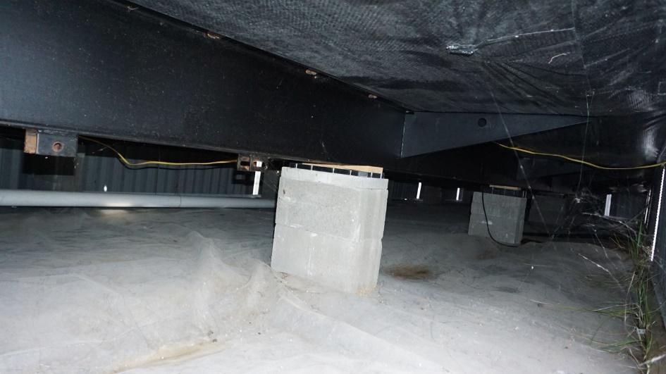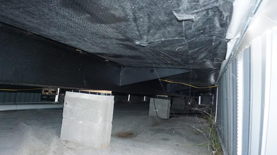The images above show the underside of a mobile home, illustrating the importance of keeping this area dry. Without proper ventilation, moisture can accumulate under your home, leading to mold growth and potential damage to the structural integrity.