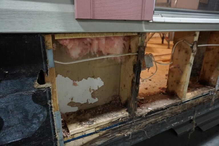- Water Damage: As seen in the images, improper sealing around windows can allow water to penetrate the structure, causing rot and mold.